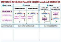 Structuri fundamentale de control al algoritmilor: Structura Secvențială, Structura Alternativă (Decizională / De Selecție) forma Completă și Redusă, Structura Repetitivă (Ciclică / Loop) ciclul cu precondiție și postcondiție.