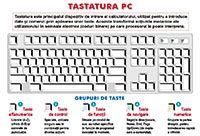 Tastatura PC. Grupuri de taste: alfanumerice, de control, de funcții, de navigare, numerice. Taste. Pronunțarea denumirii. Funcțiile. Evaluare.